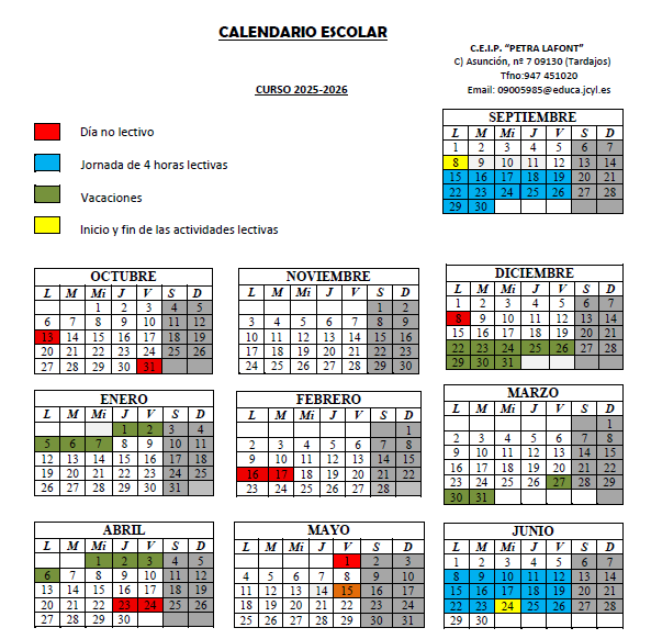 Documentos del Centro » CALENDARIO ESCOLAR 2025/ 2026